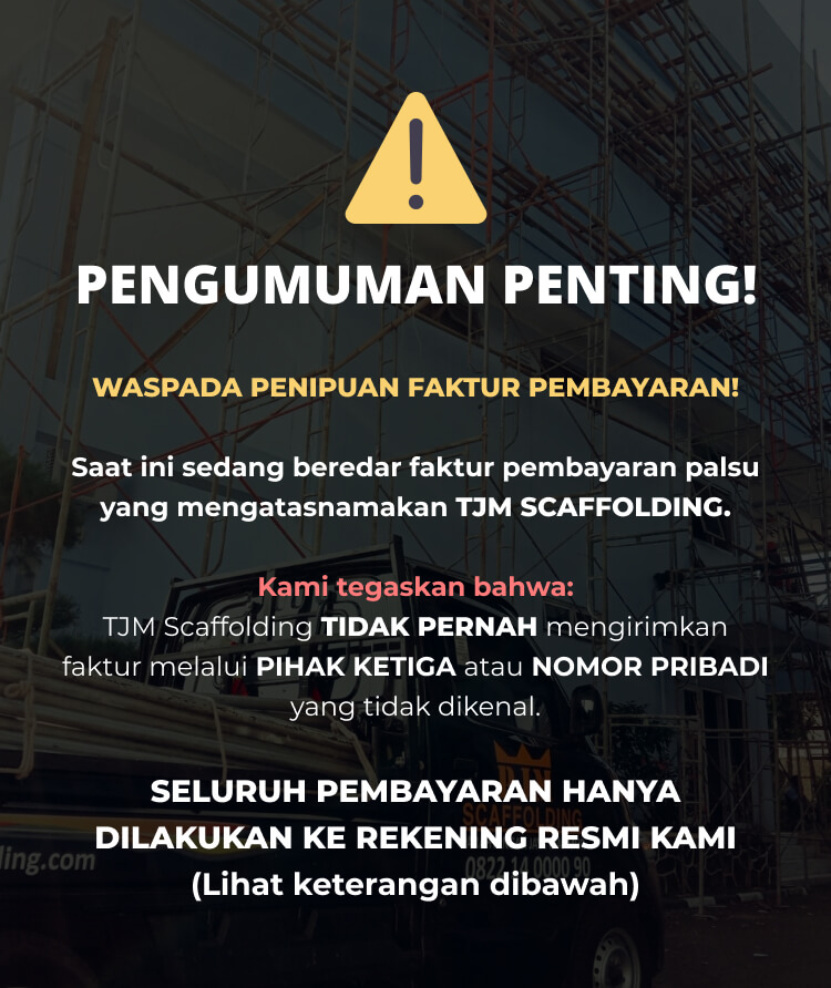 6. Untuk info, pertanyaan, dan keterangan lebih lanjut, silakan langsung konsultasi dengan Tim Customer Service TJM Scaffolding Padalarang.